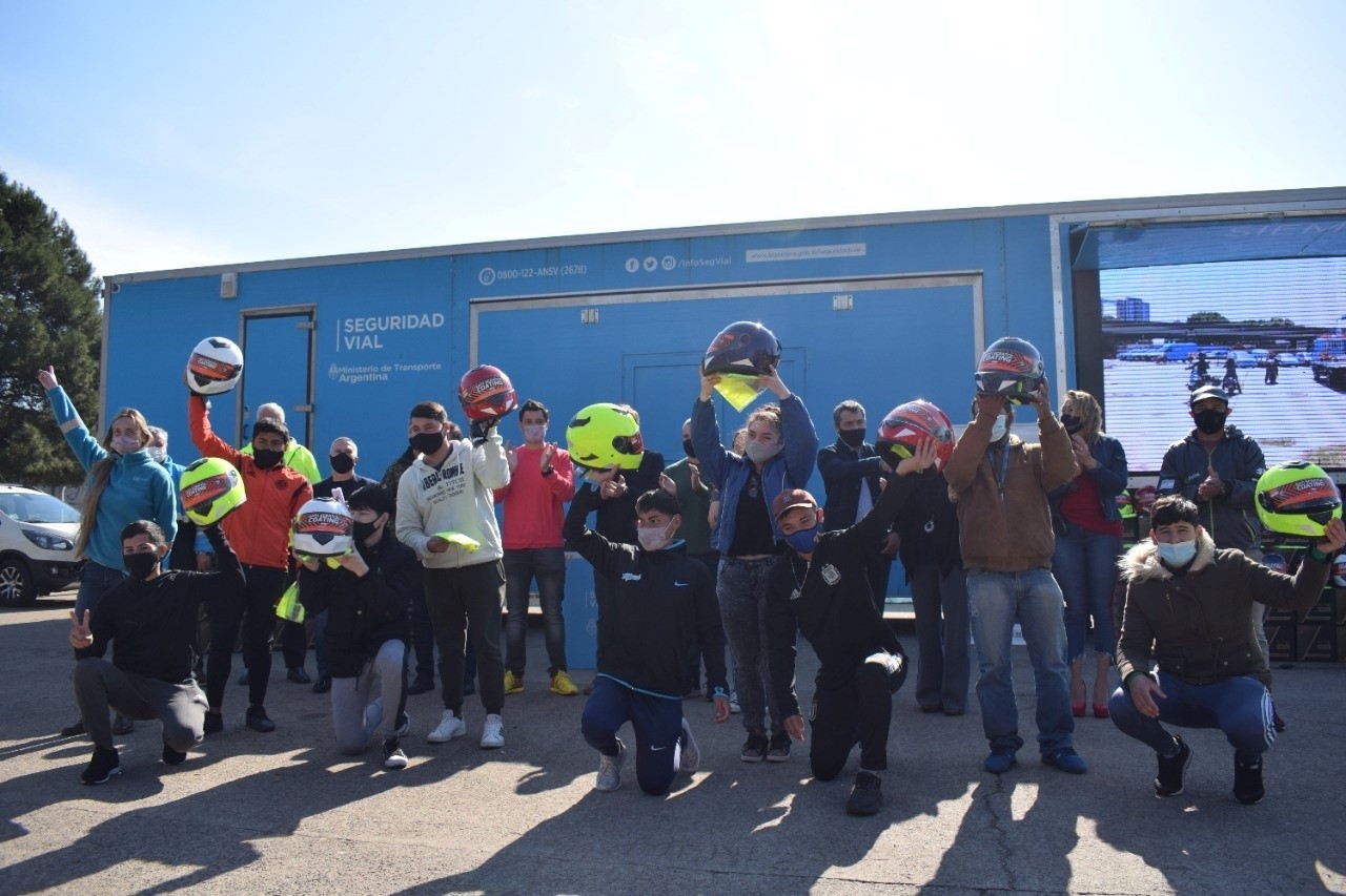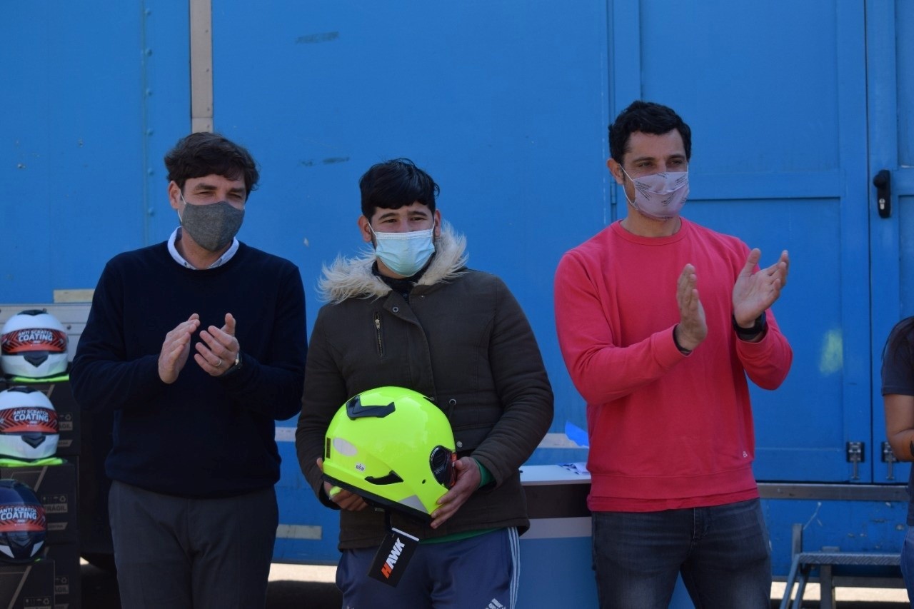 El viernes pasado, se entregaron cascos y chalecos a motodeliverys y a jóvenes que obtuvieron su licencia de conducir por primera vez, en un acto realizado en el Predio Estación Cultural que encabezo el intendente Mauro García.
