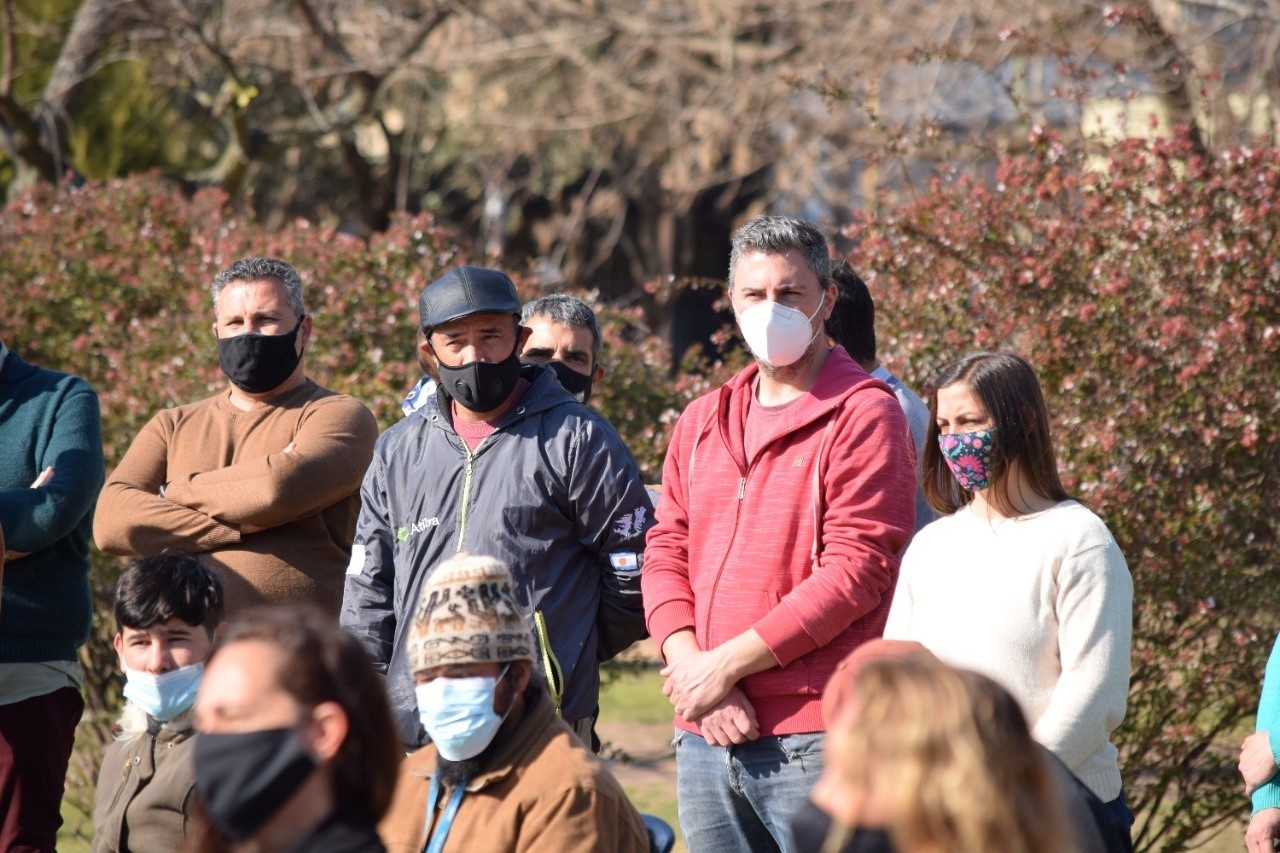 De la entrega de materiales, además del jefe comunal, participaron los precandidatos a concejales por el Frente de Todos, Manuel Anigstein, Silvia Figueiras y Carlos Beto Obregón.