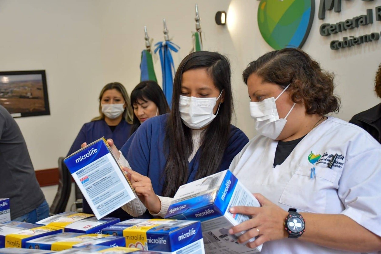 El martes 24 de mayo, el Intendente Mauro García estuvo presente en el Salón Garrahan para hacer una entrega de 57 tensiómetros digitales que serán destinados a todas los Centros de Atención Primaria (CAPS) del distrito.
