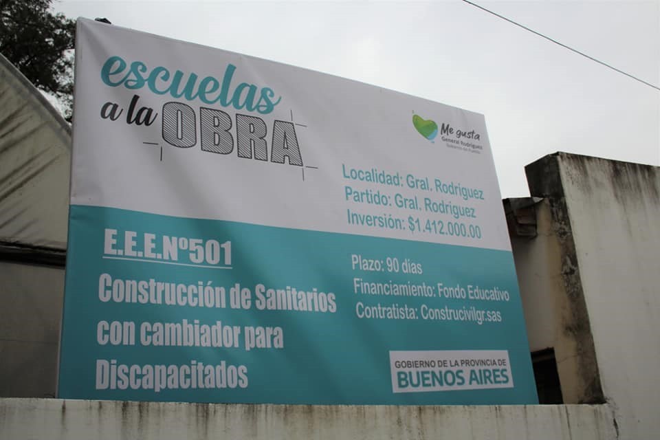 Esta semana comenzaron las obras para reacondicionar los sanitarios de la Escuela de Educación Especial N° 501 de General Rodríguez. El objetivo es que en el plazo de 90 días la institución cuente con baños y cambiadores para personas con discapacidad motora y/o movilidad reducida.