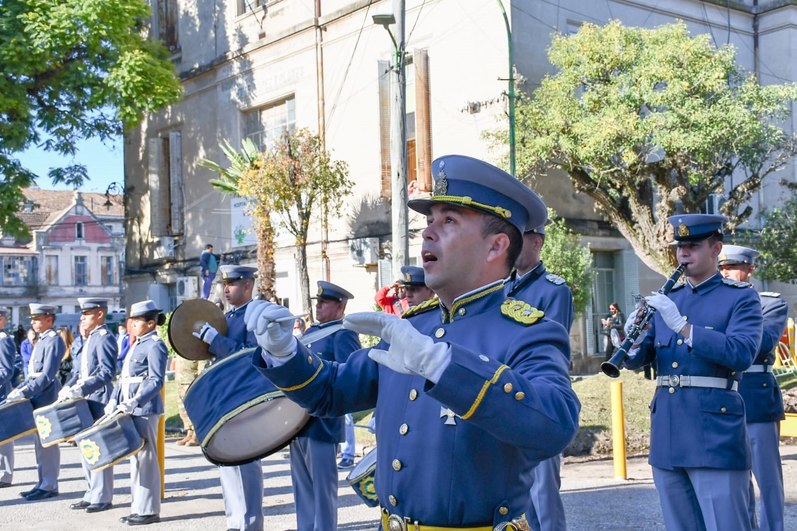 Luego del izamiento de la bandera post pandemia, con la presencia y el acompañamiento de la Banda Militar del Ejército Argentino, expresaron unas palabras alegóricas el intendente Mauro García y el director del Hospital, Cristian Varela.
