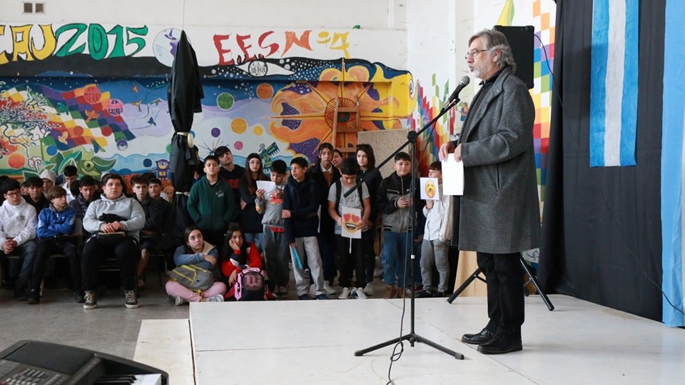 “Desde la dirección de artística ya habíamos venido y pensamos en la posibilidad de que esta escuela pudiera dar un salto de calidad para pasar de escuela secundaria orientada a secundaria especializada, lo cual indicaba ponerle mayor énfasis a la educación artística de esta escuela y esto es lo que en el día de hoy vamos a celebrar”, sostuvo el Director Provincial de Educación Artística, Daniel Fabián.