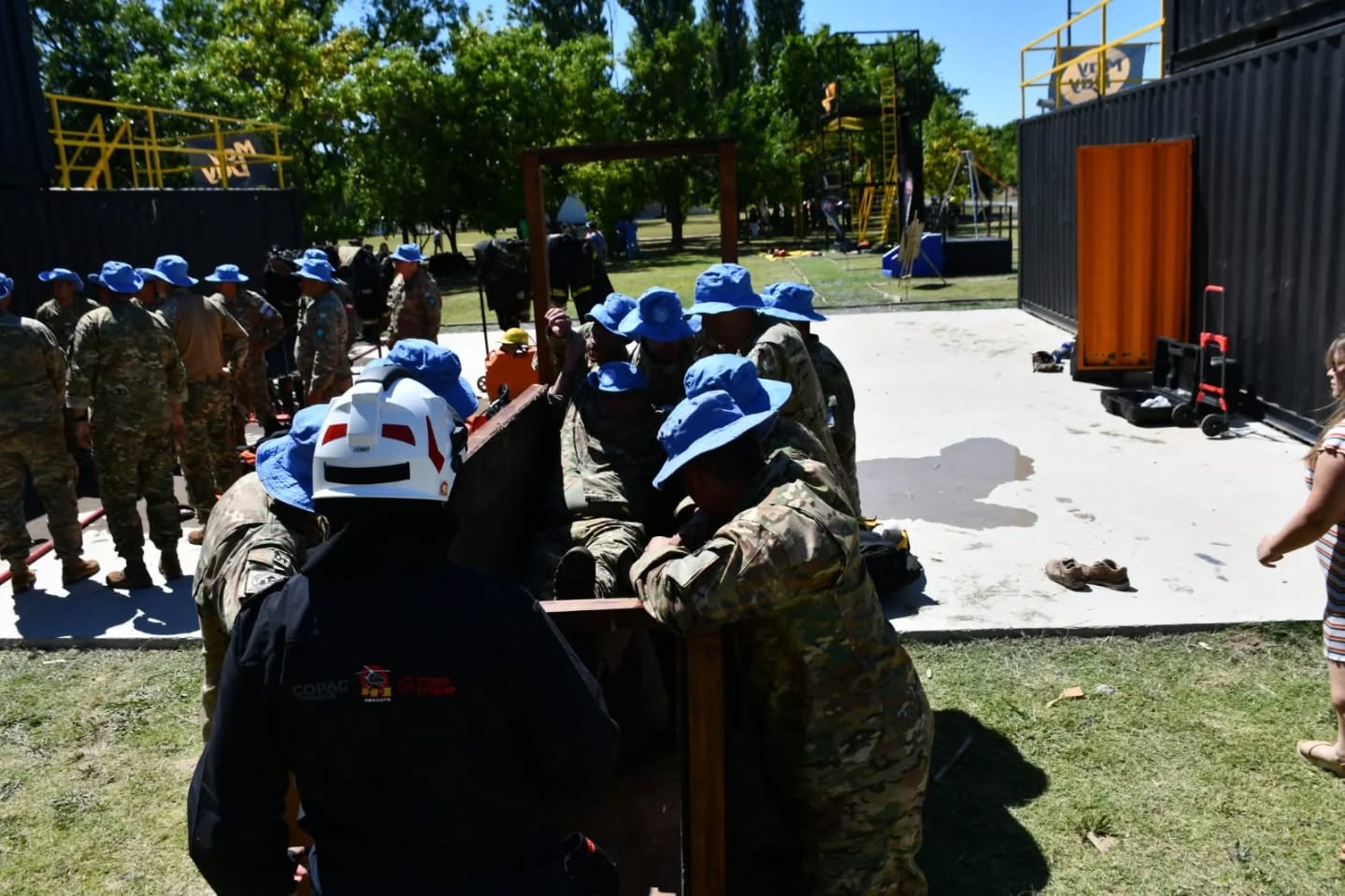 La capacitación se desarrolló en nuestra ciudad con el acompañamiento de la ONG May Day, que organizó un entrenamiento intensivo en lucha contra incendios y búsqueda y rescate. Participaron 40 hombres y mujeres pertenecientes a la Fuerza de Tareas N.º 66, integrada por efectivos de Argentina, Chile, Brasil, Ecuador y Paraguay.