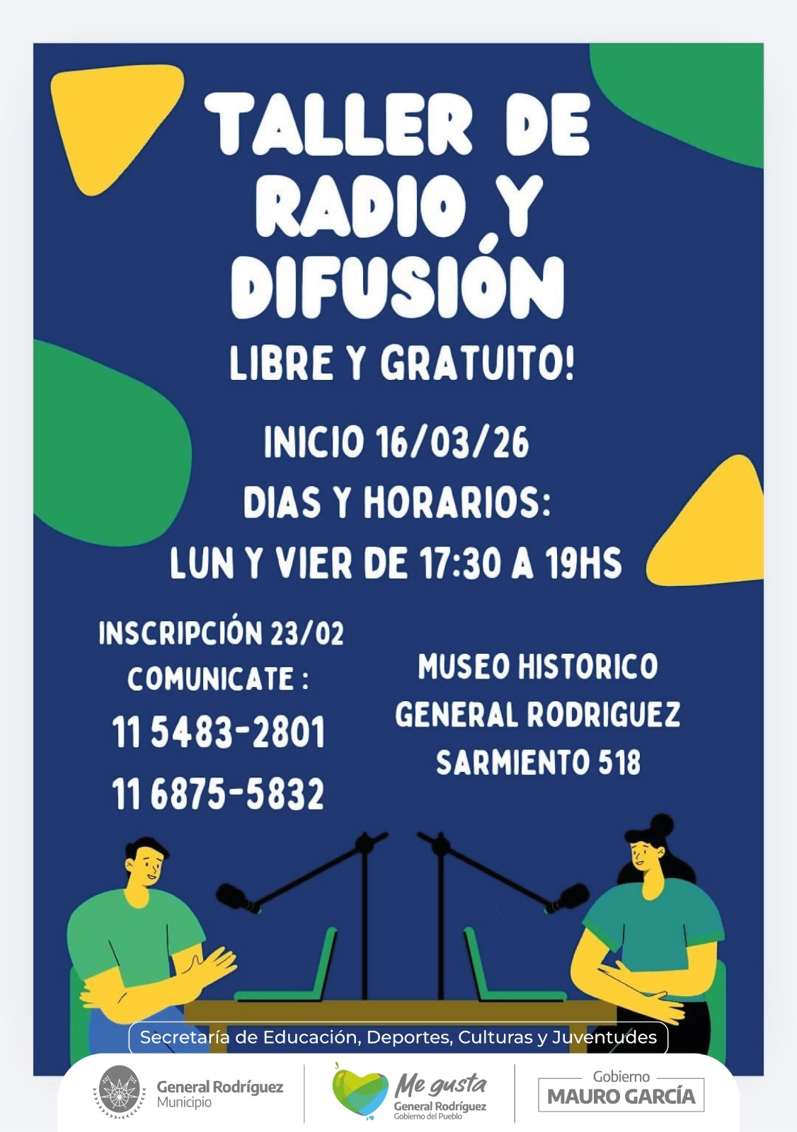 En General Rodríguez se realizará un taller de radio y difusión libre y gratuito, una iniciativa impulsada por la Secretaría de Educación, Deportes, Culturas y Juventudes del municipio. La propuesta busca acercar herramientas de comunicación a vecinos y vecinas interesados en el mundo de la radio.