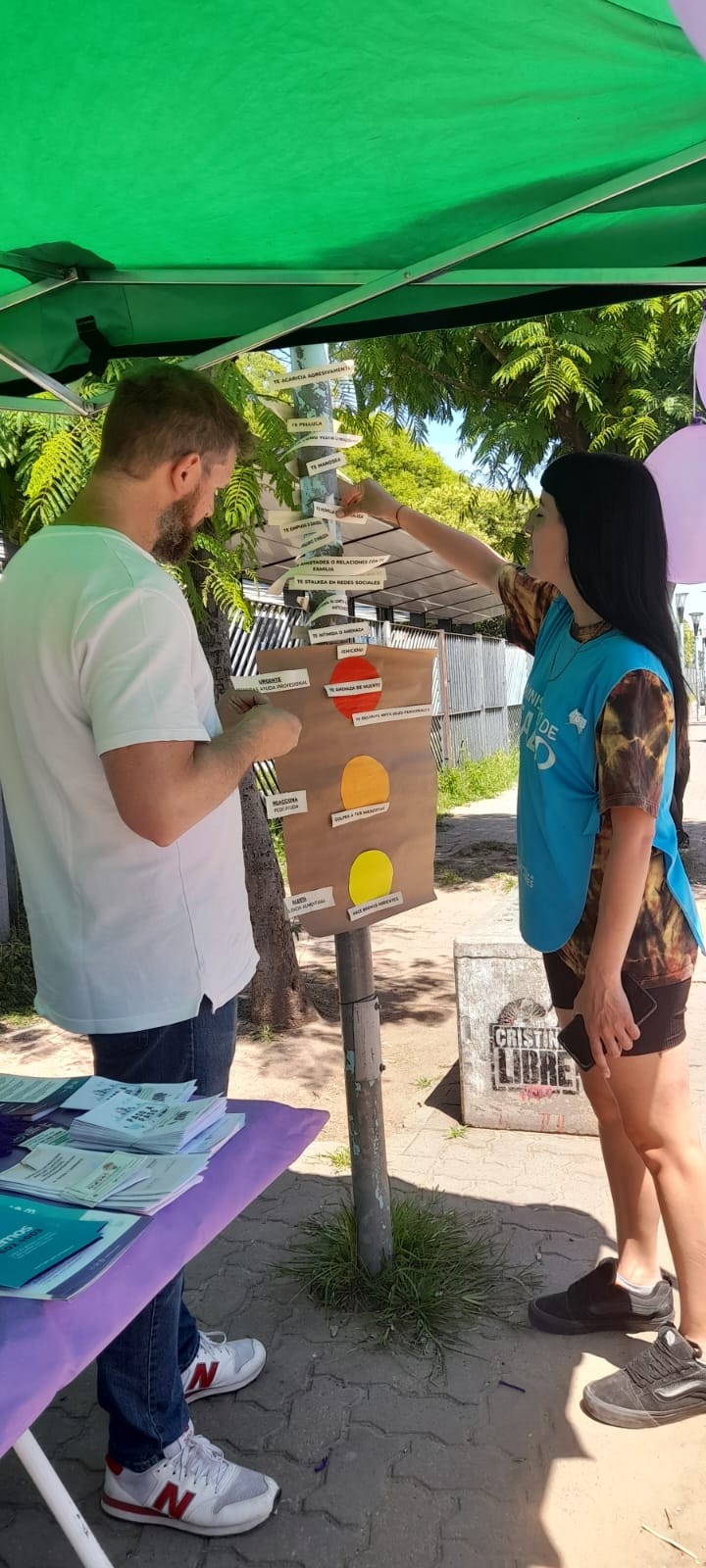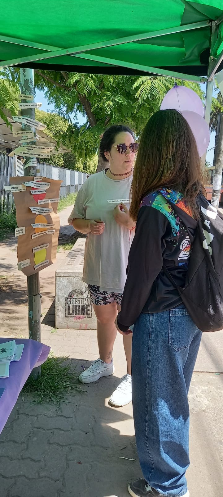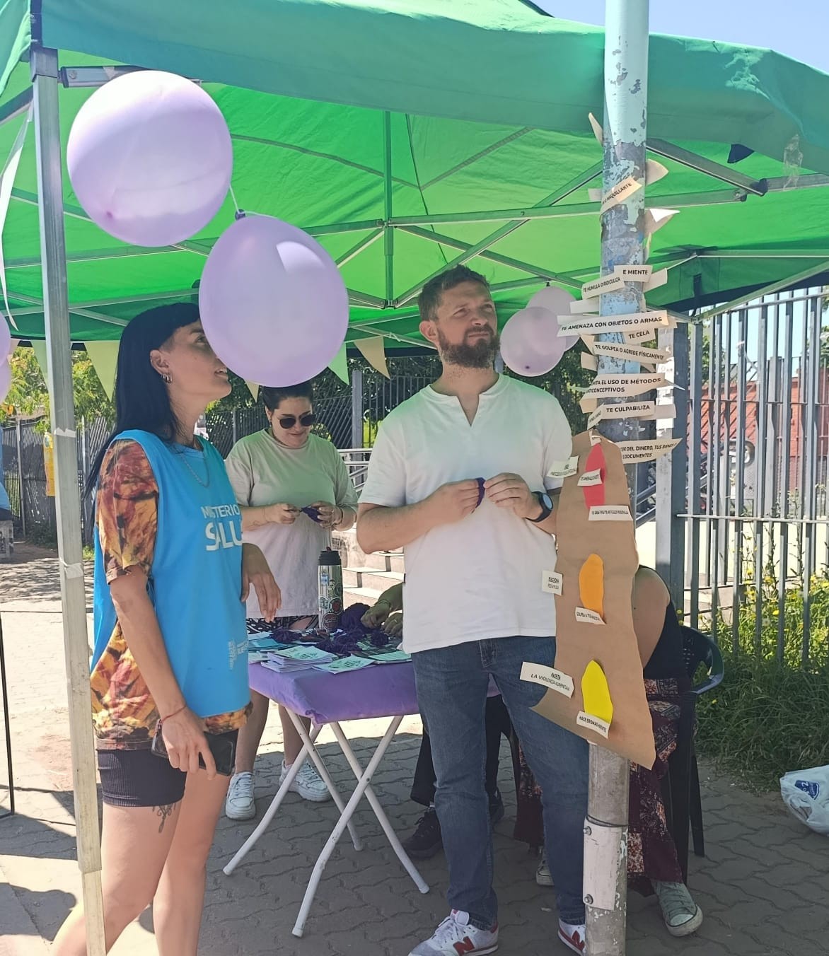La actividad incluyó la propuesta participativa conocida como “el semáforo de la violencia”, una herramienta utilizada para identificar señales de alerta y distintos tipos de situaciones que pueden configurarse como violencias por razones de género. Vecinas y vecinos se acercaron para reflexionar y reconocer conductas cotidianas que requieren atención, intervención o acompañamiento.