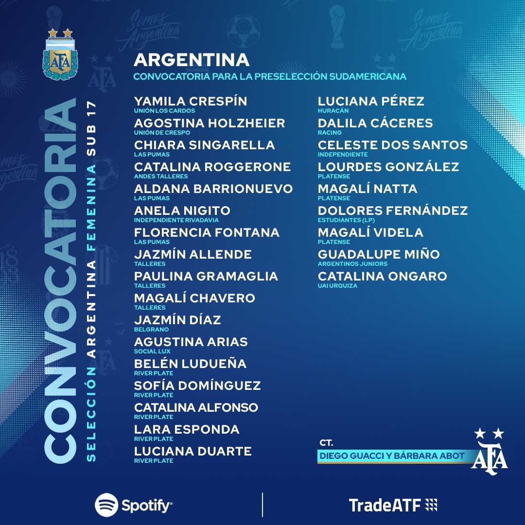 El día 14 de octubre, la Asociación del Futbol Argentino, dio a conocer la lista de la Preselección Sub 17 que disputará el sudamericano a llevarse a cabo en Uruguay. Dicho torneo, debió disputarse en el mes de abril, sin embargo, debido a la pandemia del Covid-19 el compromiso se pospuso, iniciará el 30 de noviembre y finalizará el 19 de diciembre.