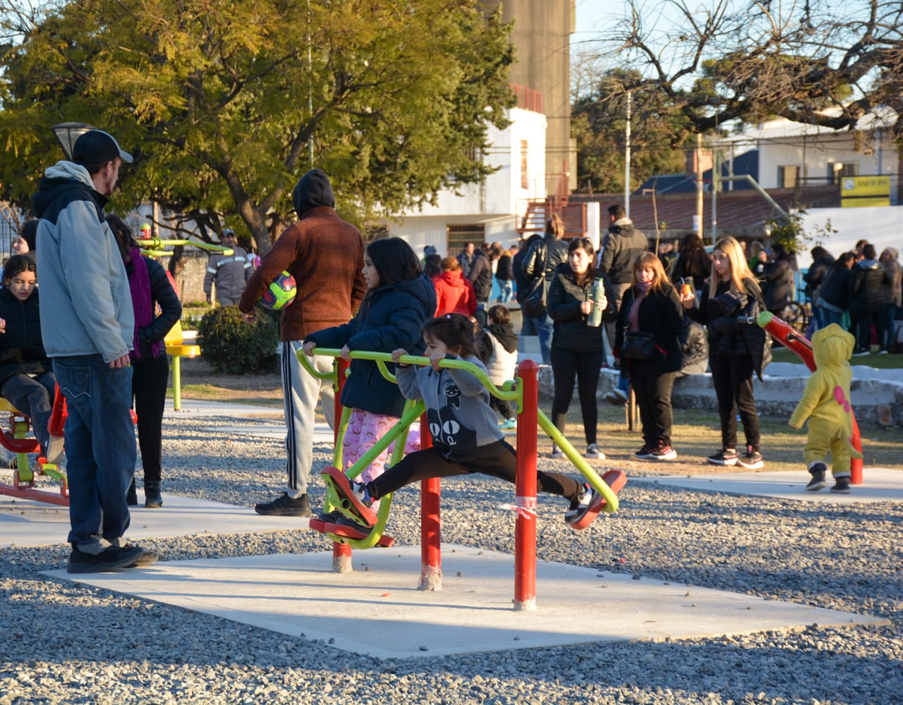 Allí García inauguro el nuevo playón multiuso, juegos, mobiliario urbano y el proceso de reforestación que se está llevando a cabo en la plaza.