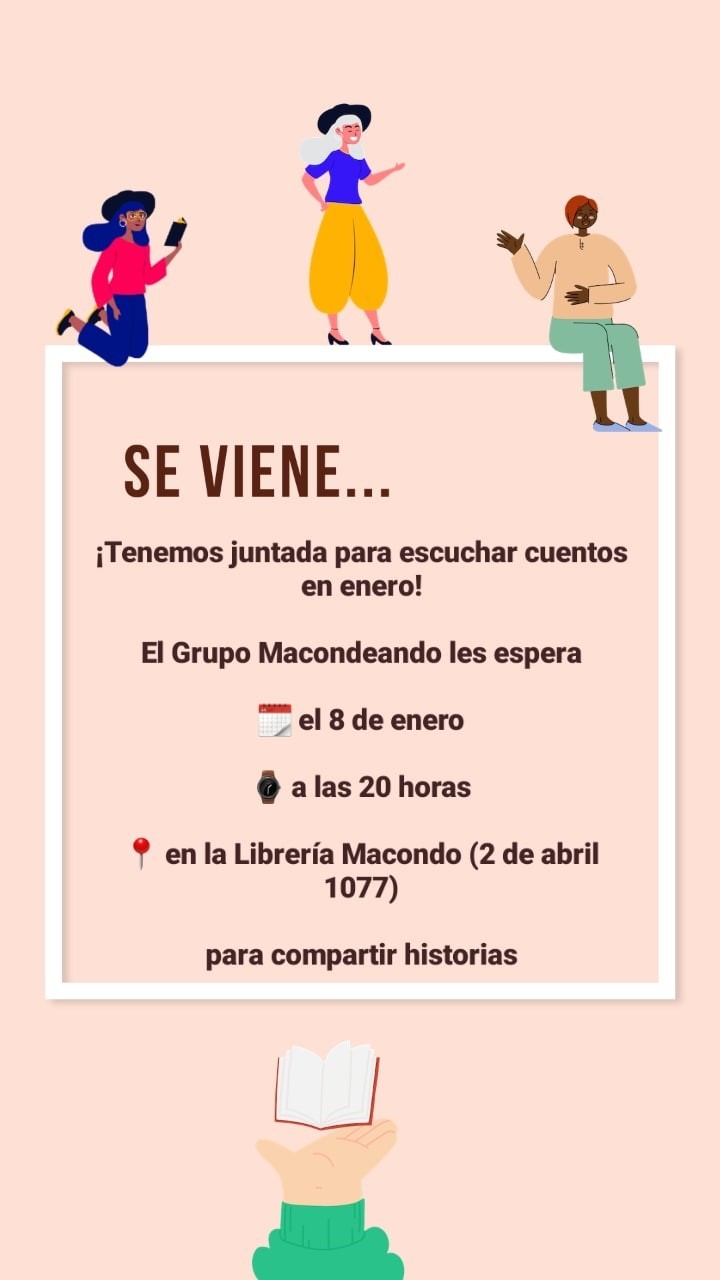 El domingo 8 de enero a las 20 horas en la librería Macondo, ubicada en 2 de abril al 1077, General Rodríguez, se llevará a cabo un encuentro abierto a la comunidad donde se compartirán cuentos e historias. Será la primera presentación del año del grupo de cuentacuentos “Macondeando”, a cargo de la profesora Beatriz Dasso. En esta oportunidad participarán Beatriz Dasso; Marisa Moyano; Graciela Ocampo, fundadora de Macondo; José Nicótera y Daniel Bataloff. Además, habrá un espacio de musicalización de la mano del artista José Antonio Rodríguez, “el Tucu”, quien acompañará la jornada de los y las presentes con su guitarra y canciones.