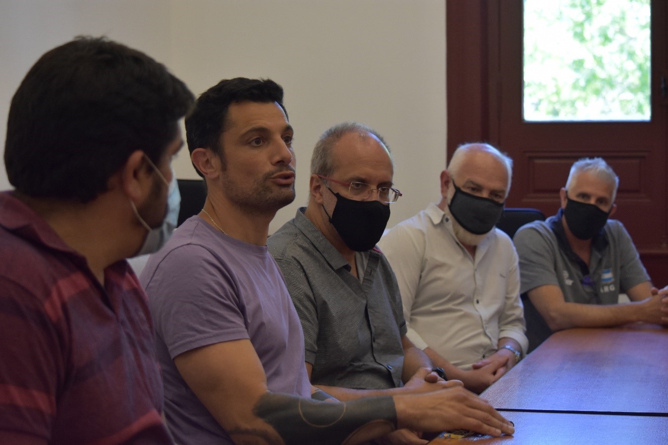 Se reunieron con el Jefe comunal el entrenador de la selección argentina masculina de vóley, Marcelo Méndez, el vicepresidente 1° de FeVA, Juan Sardo, el coordinador de selecciones formativas, Fabián Muraco y el manager de selecciones Facundo Rizzone.