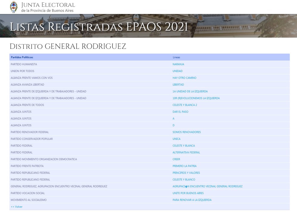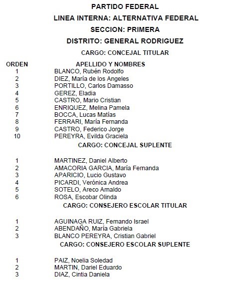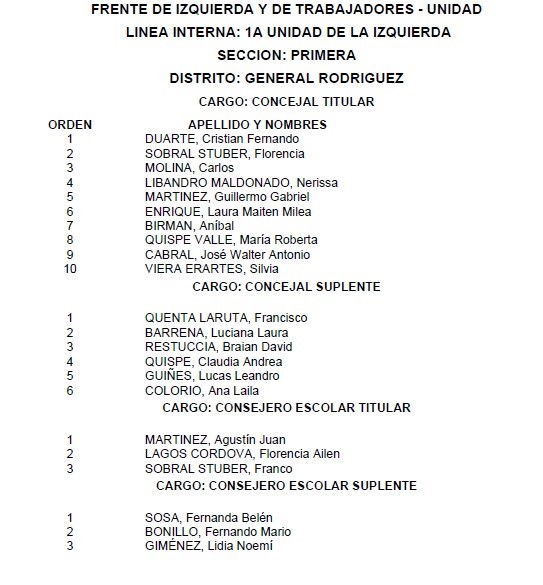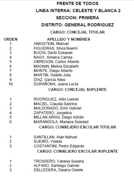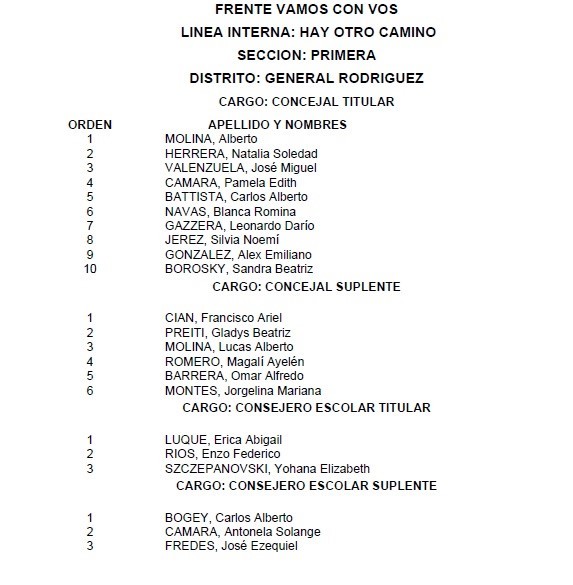 Las listas con los precandidatos y precandidatas para las PASO 2021 tuvieron su cierre el pasado sábado 24 de julio. En General Rodríguez, fueron registradas ante la Junta Electoral de la Provincia de Buenos Aires 21 listas en total, de las cuales varias compiten con otras listas internas.