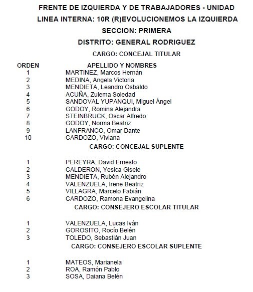El Frente de Izquierda de los Trabajadores-Unidad, también tendrá internas, una de las listas está encabezada por Cristian Duarte y la otra por Marcos Martínez.