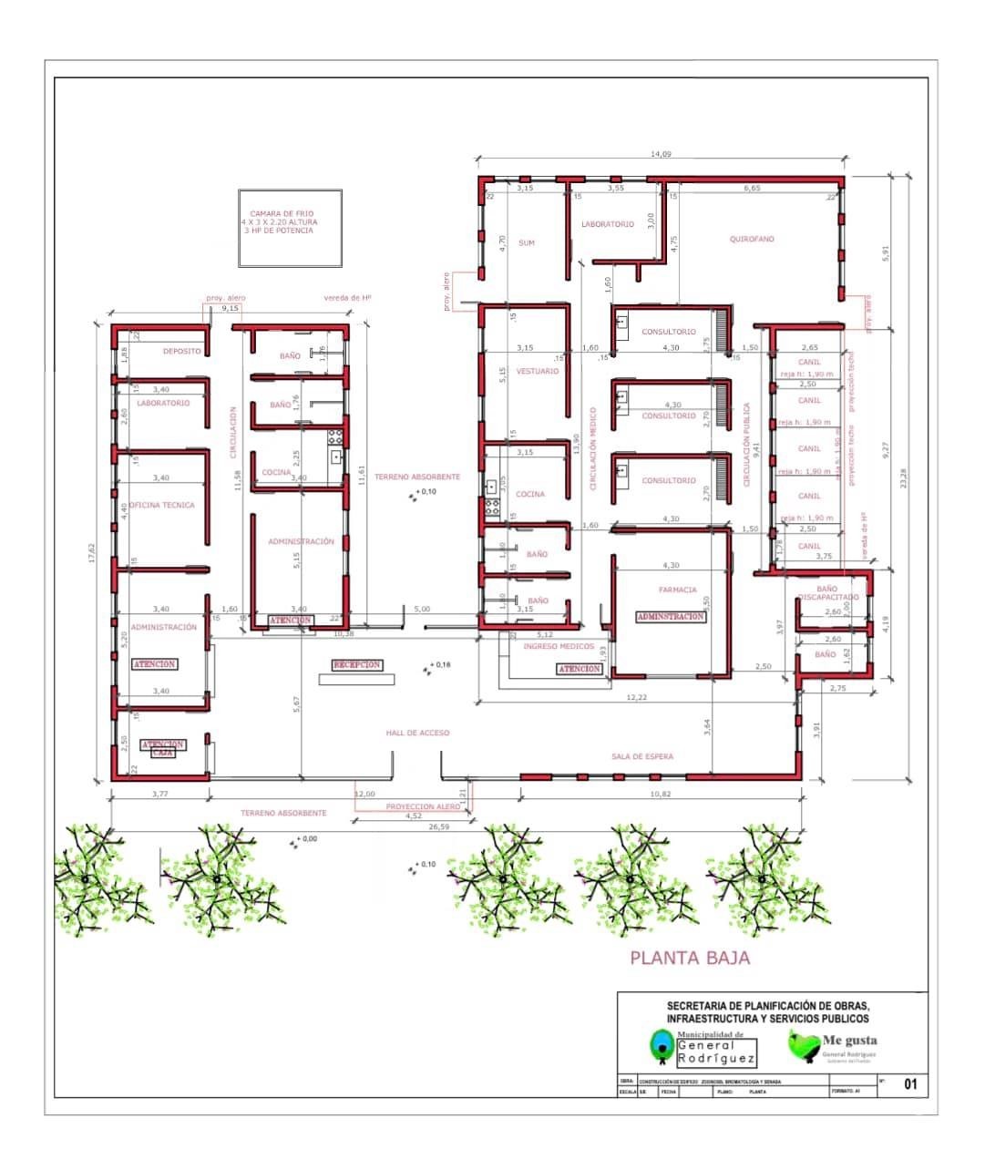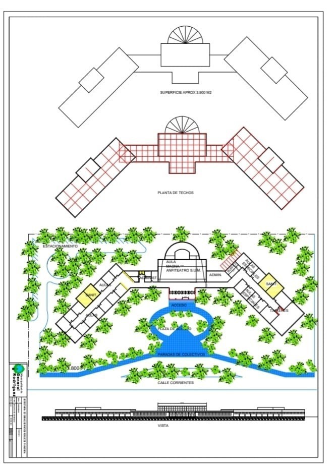 La Universidad Pública de General Rodríguez tendrá una dimensión de 3.900 metros cuadrados, con acceso sobre la calle Corrientes – pasando la Ruta Prov. 24, un área central con aula magna, dos pabellones con aulas y espacios verdes.