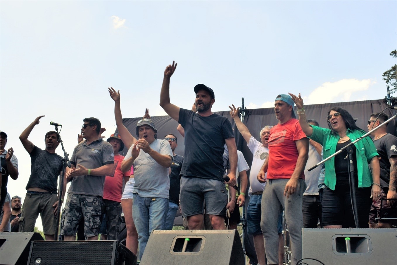 Antes del almuerzo, desde el escenario, el Secretario General de la Seccional ATILRA General Rodríguez, Heber Rios, brindó unas palabras.