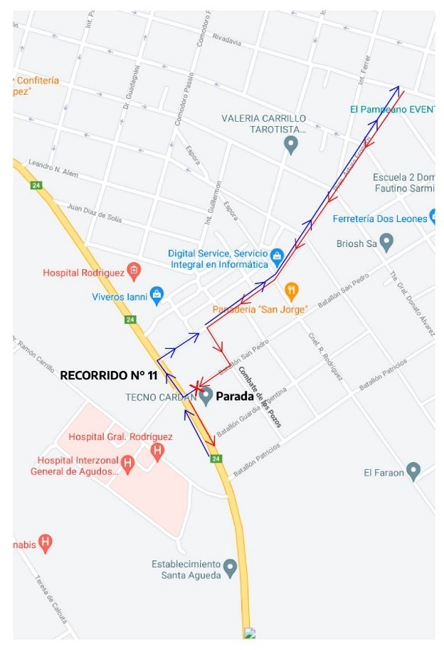 En tal sentido, la parada transitoria para el ascenso y descenso de pasajeros que se dirijan desde y hacia el Hospital se ubicará en la esquina de Batallón San Pedro y Ruta Provincial N° 24.