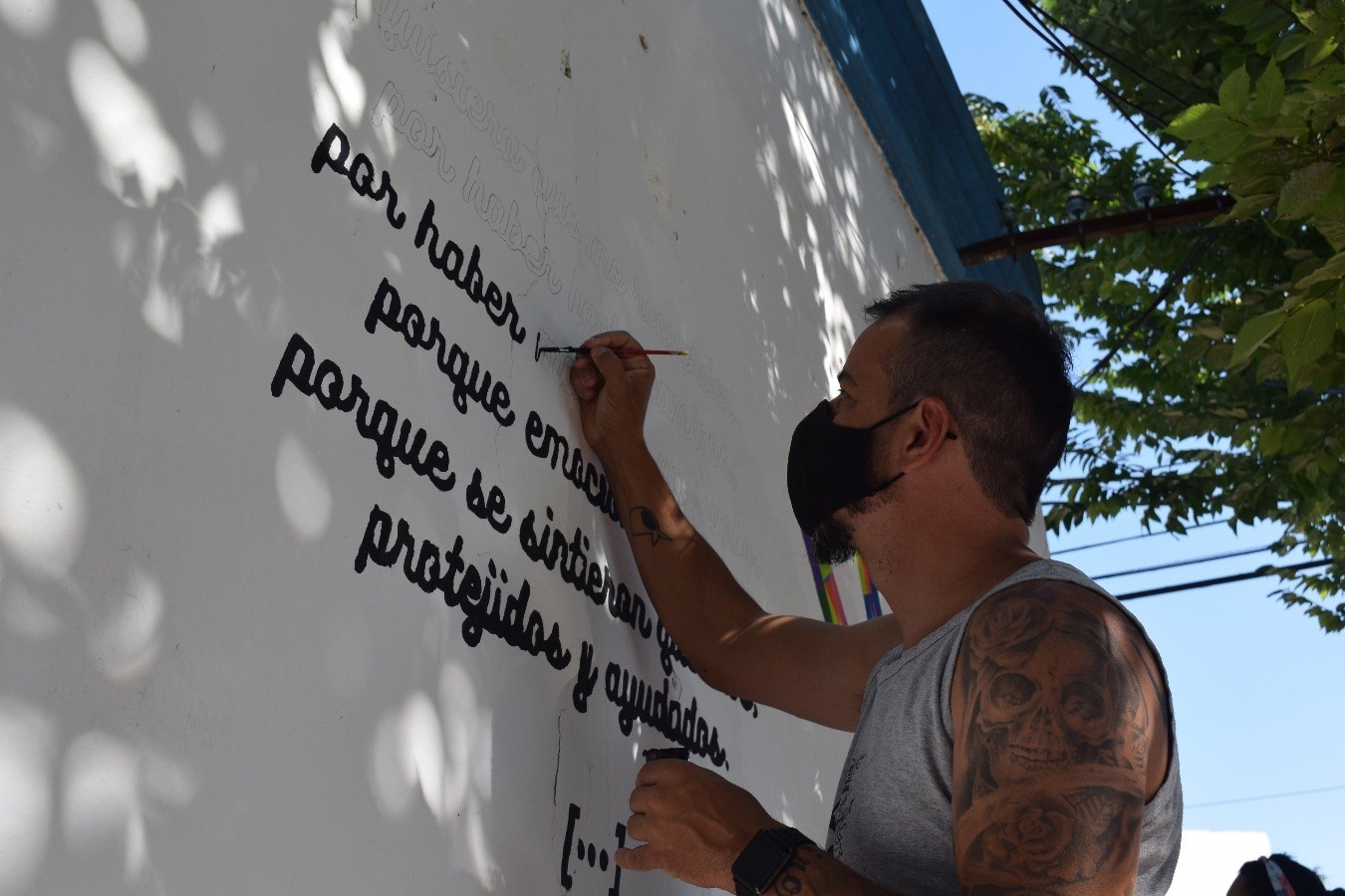 El mismo fue plasmado por la artista local, Valeria Castelluccio, con la colaboración de otras militantes del espacio, entre ellas Mónica Correa y Susana Leguizamón.