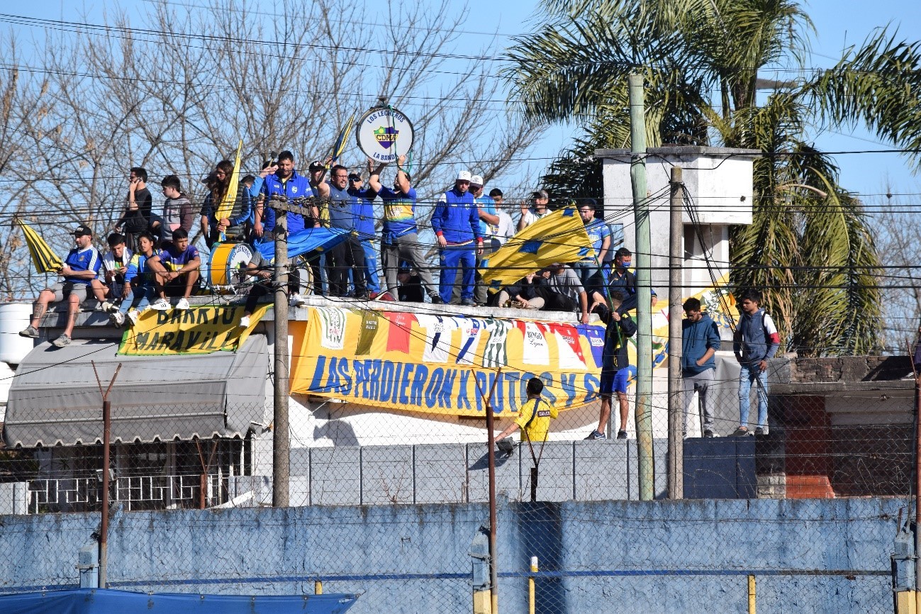 CON HINCHADA DESDE AFUERA: A pesar de la Pandemia que ha afectado la vida cotidiana, de a poco el fútbol argentino va tomando color, y en esta oportunidad, hinchas de Leandro N. Alem, coparon los techos de las casas vecinas para alentar al equipo en estas situaciones.