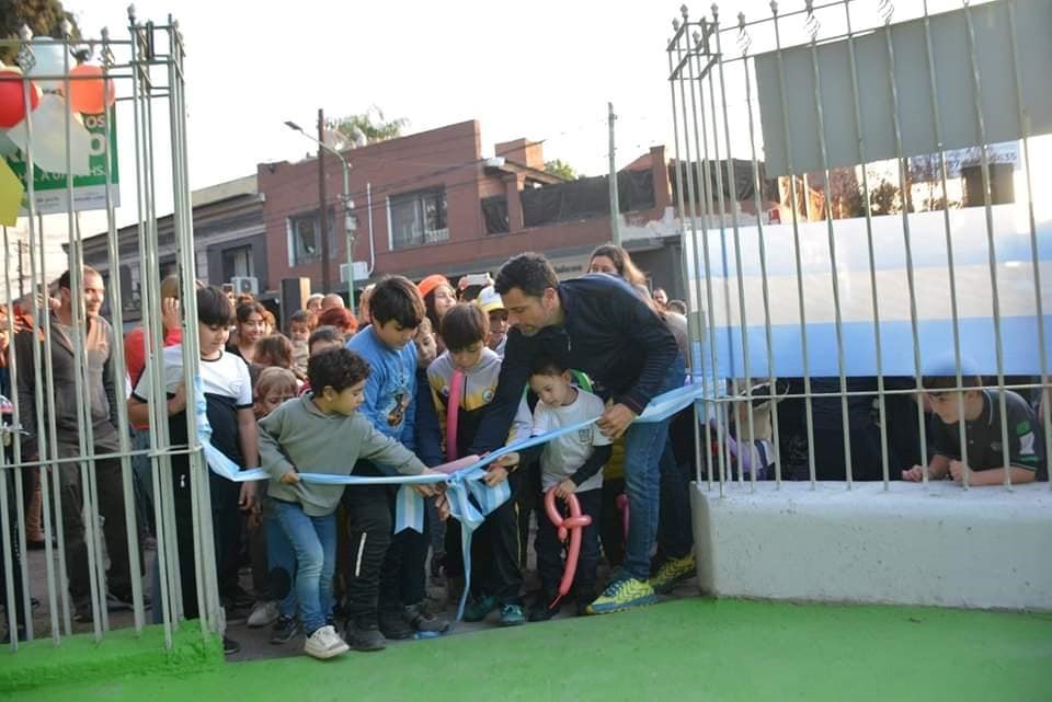 El intendente, acompañado de funcionarios municipales, realizo el tradicional corte de cinta junto con una gran cantidad de niñxs que asistieron a la inauguración del espacio que había permanecido cerrado durante un corto tiempo para su refacción.