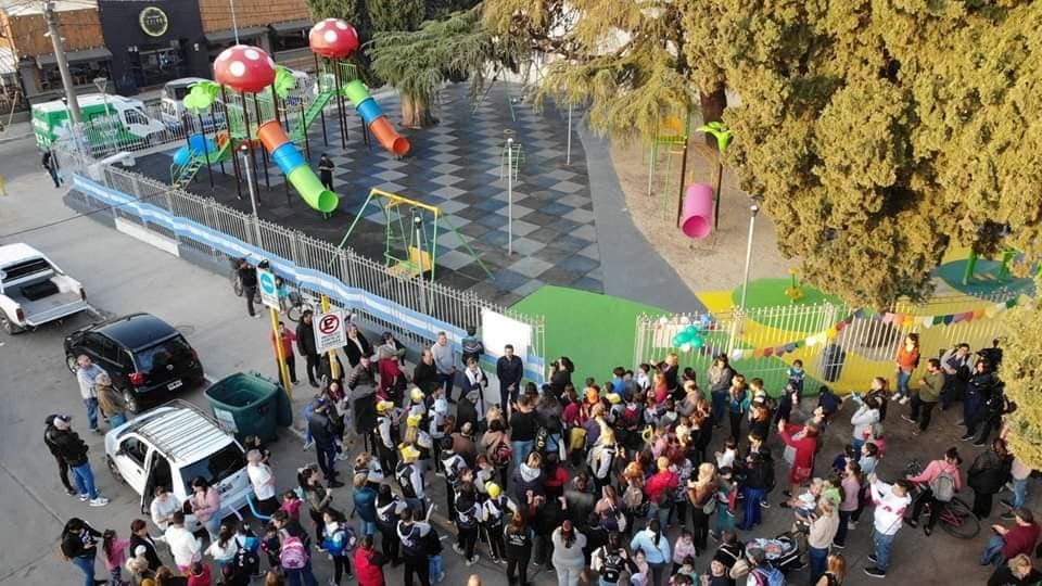 Ubicado en la esquina de las calles Intendente Garrahan y Sarmiento, este espacio fue reformado desde cero, adquiriendo ahora una estética moderna con un entorno integrativo y mas seguro para los miles de niños y niñas que pasa a diario por allí.