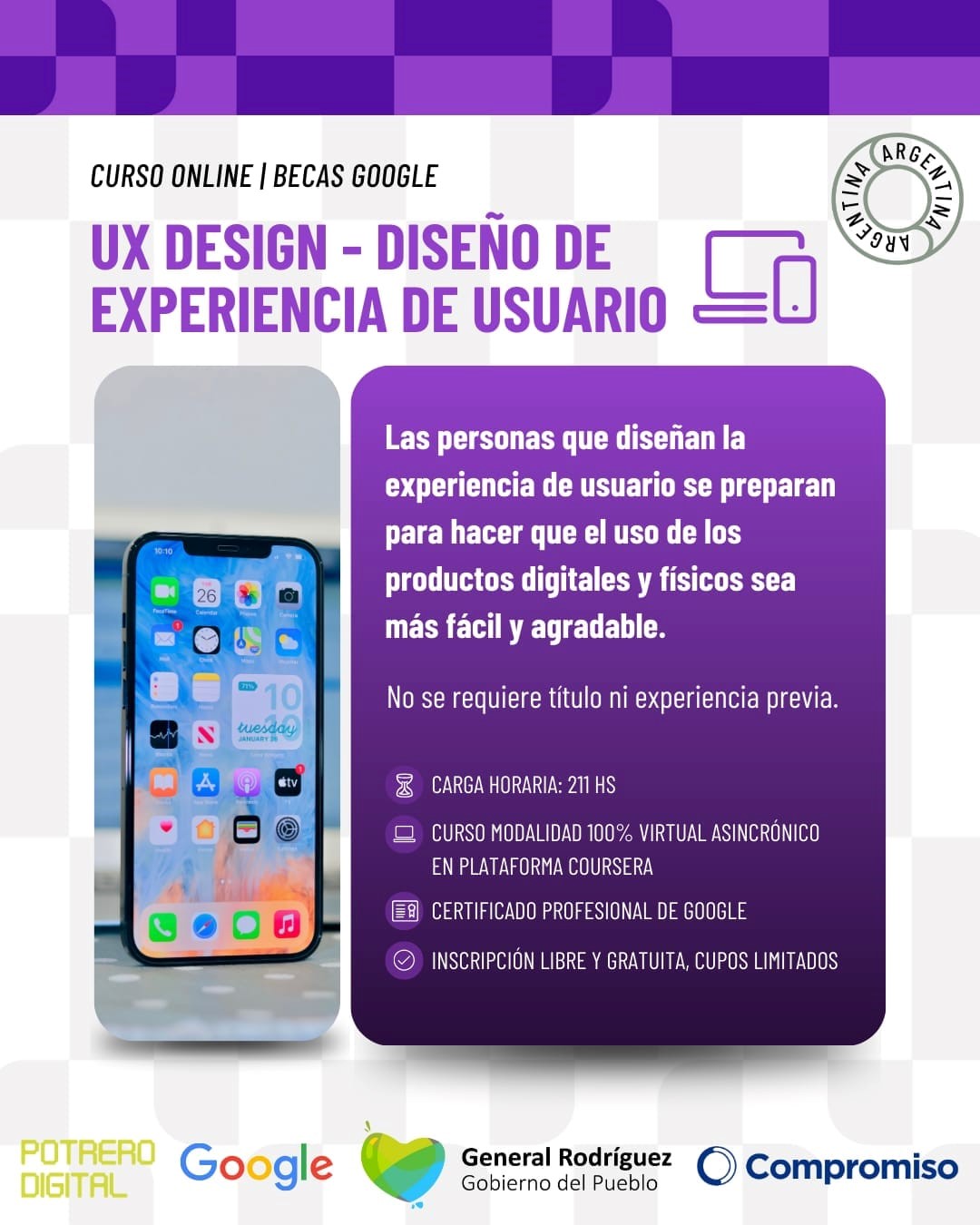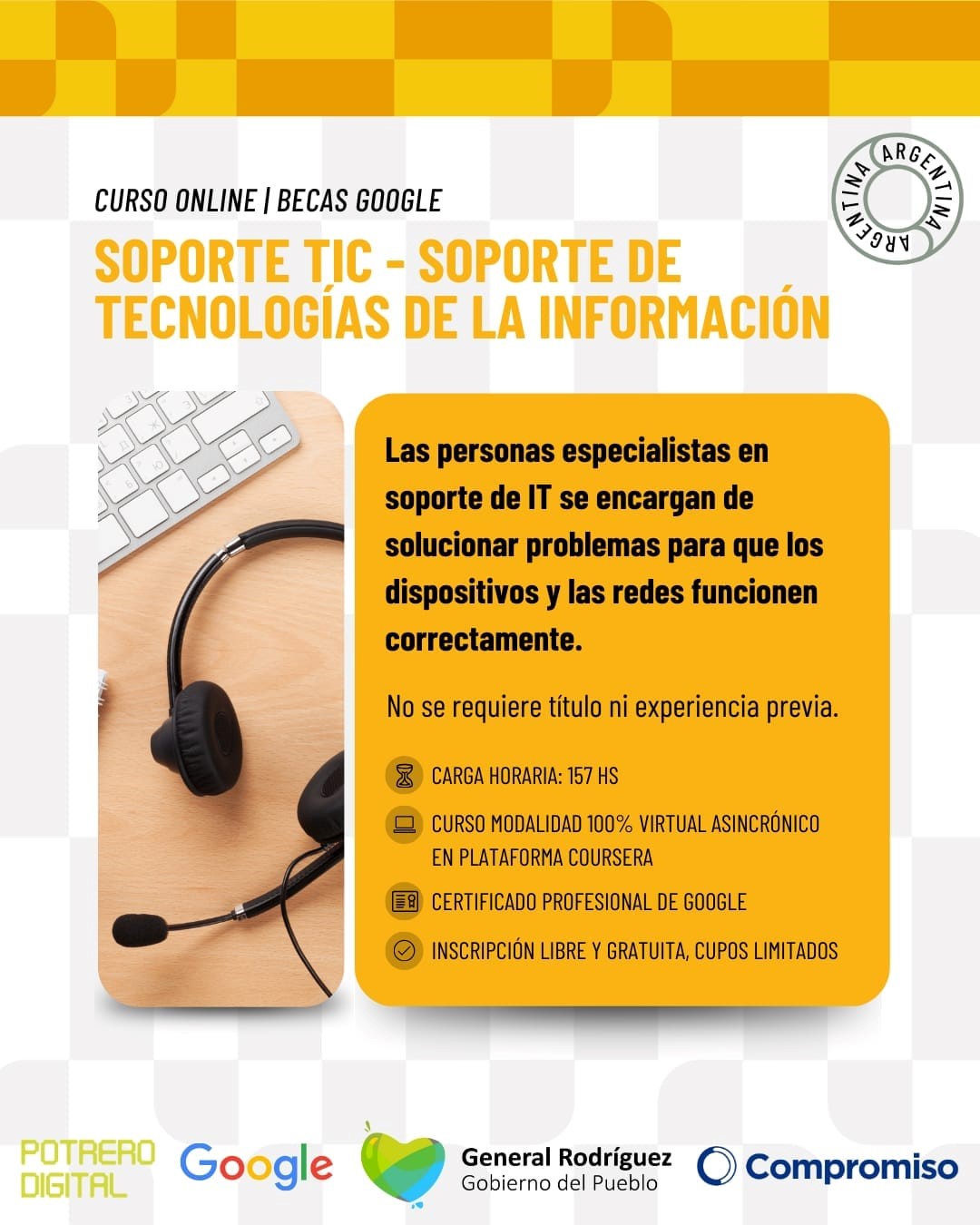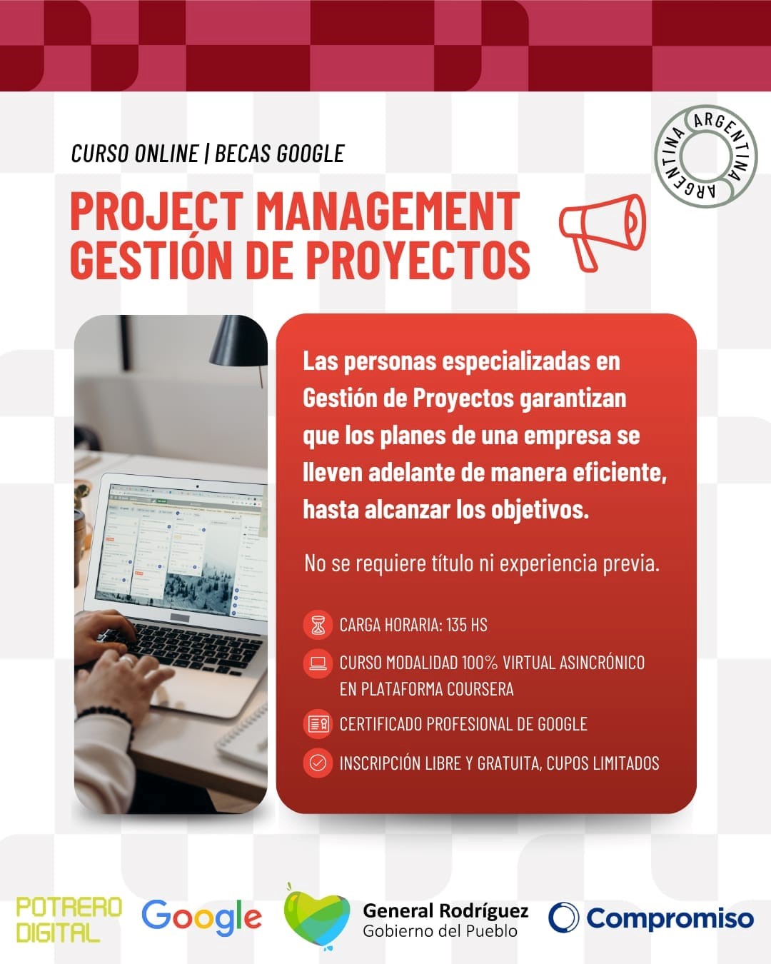 A través de las redes sociales el gobierno local informó que se encuentra abierta la pre inscripción a los cursos que brindan herramientas tecnológicas, como parte del convenio firmado entre la municipalidad y Potrero Digital, una red de aprendizaje que funciona gracias a los aportes de la Fundación Compromiso.
