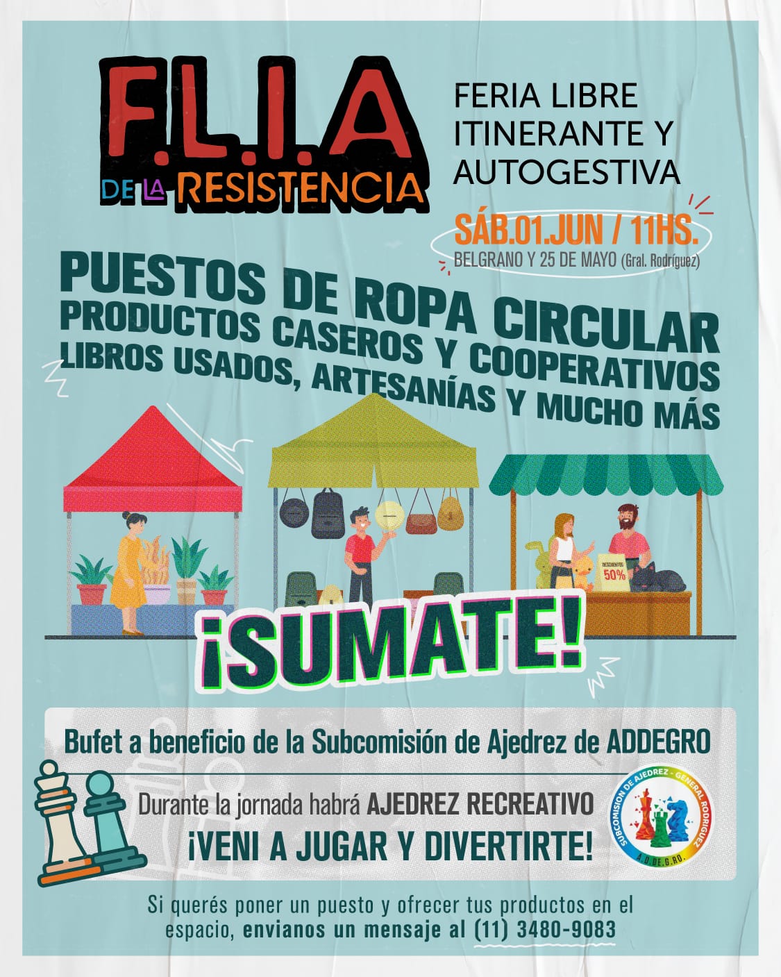 La próxima edición se llevará a cabo este sábado 1 de Junio, a partir de las 11hs, en la sede de la peña, ubicada en Av. 25 de Mayo y Belgrano, donde habrá puestos de ropa circular, productos caseros y cooperativos, libros usados, artesanías y mucho más. Además, durante la jornada habrá Ajedrez Recreativo y buffet a beneficio de la Subcomisión de Ajedrez de ADDEGRO.