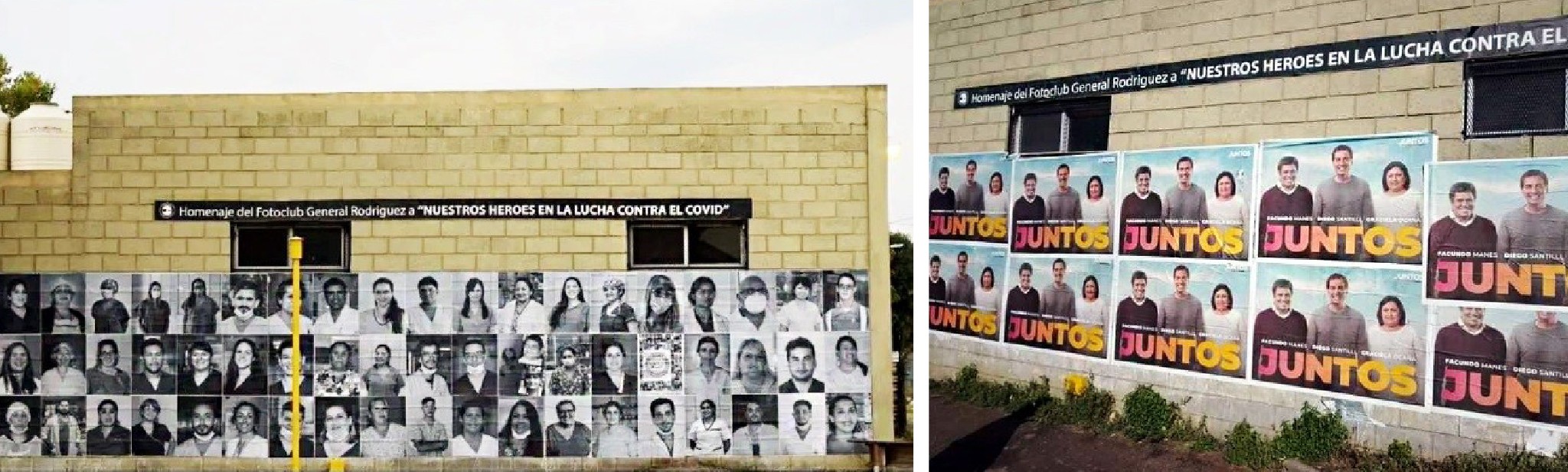 Esto sucede luego de que el espacio político Juntos, liderado en el distrito por Dario Kubar, tapó con cartelería partidaria el mural homenaje que estaba ubicado en un muro a pocos metros del cruce ferroviario de la Avenida San Martín.