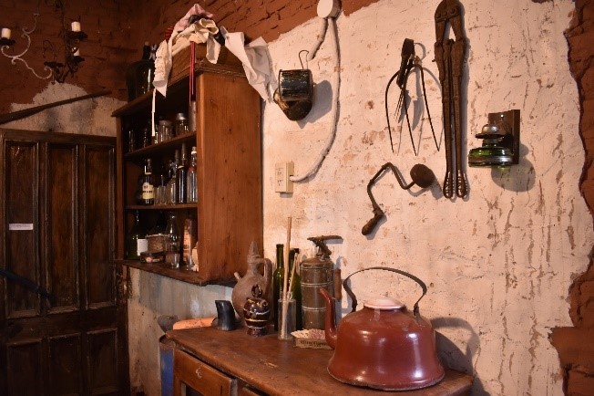 Dentro de la misma se pueden encontrar ponchos, una guitarra, botellas, jarros entre otros elementos que fueron donados por vecinos y vecinas cada vez que se acercaban a recorrer el museo, los cuales embellecieron y transformaron la obra en lo es. Además, tanto los bancos como los soportes para la mesada se realizaron con la madera que se reutilizó de un árbol, que debió ser retirado del patio del museo debido a que podía caerse sobre las casas lindantes.