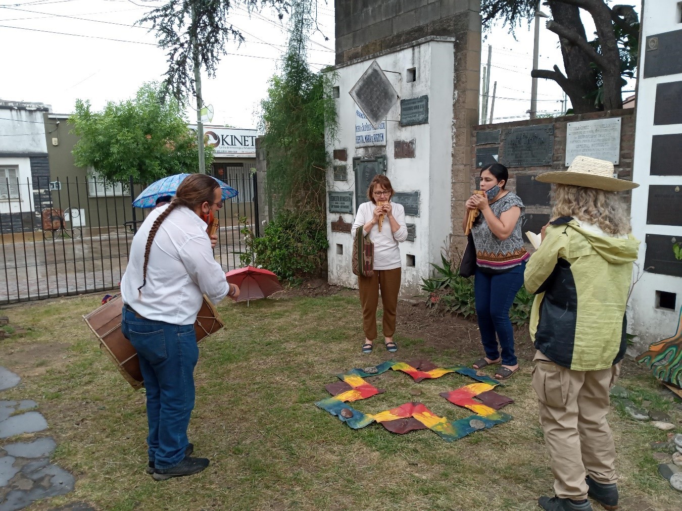 Por la tarde, en el parque, siguió realizando su intervención “La Apacheta” la artista local Gabriela Piepoch y dieron su ofrenda el grupo de sikuris de la Casa de la Cultura.