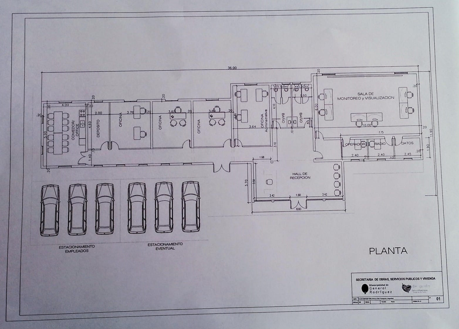 El proyecto contempla un salón central de Monitoreo y Visualización, una Oficina Administrativa, tres oficinas destinadas para el personal de Defensa Civil, salón Comedor, hall de recepción, accesos peatonales y estacionamiento para personal y móviles policiales.