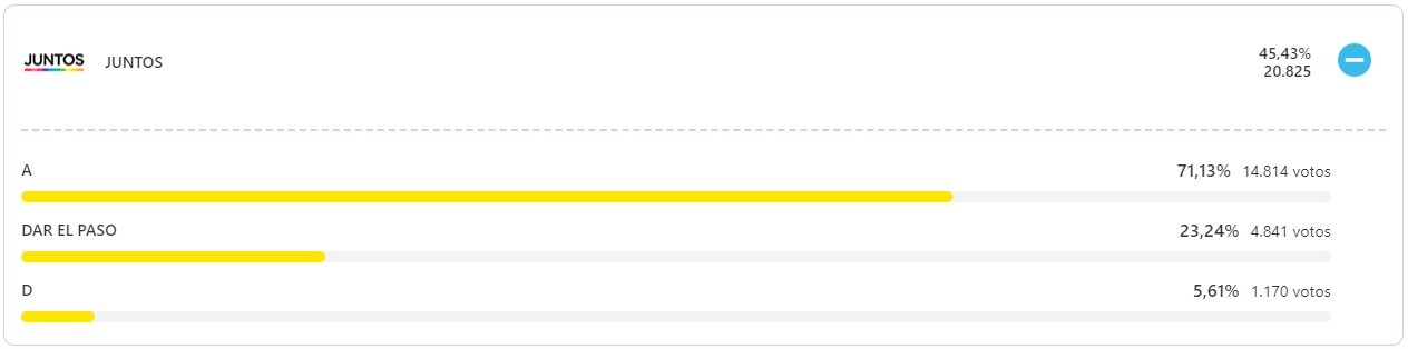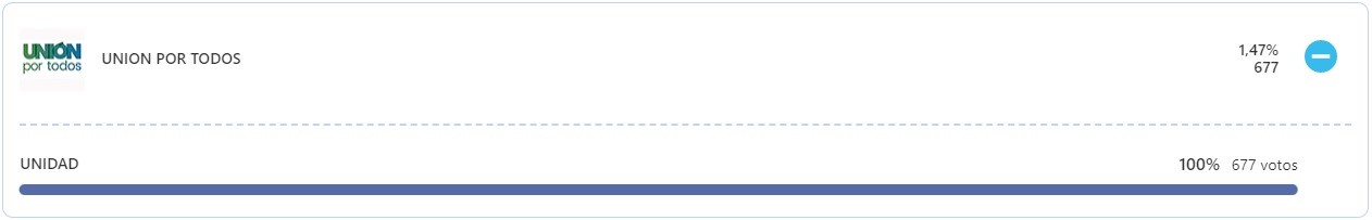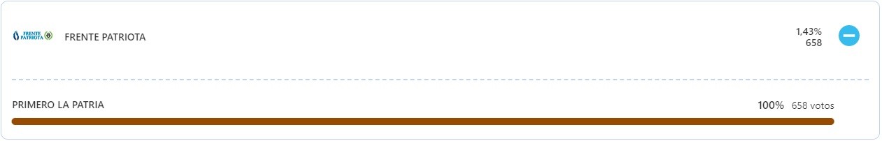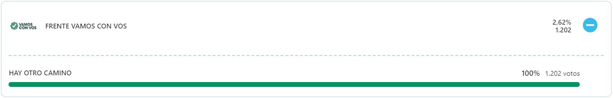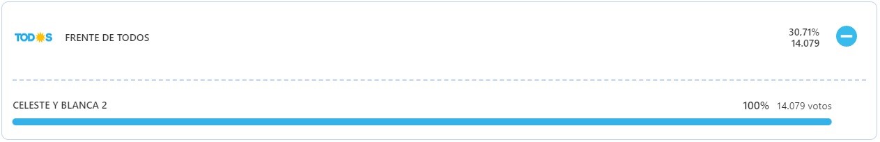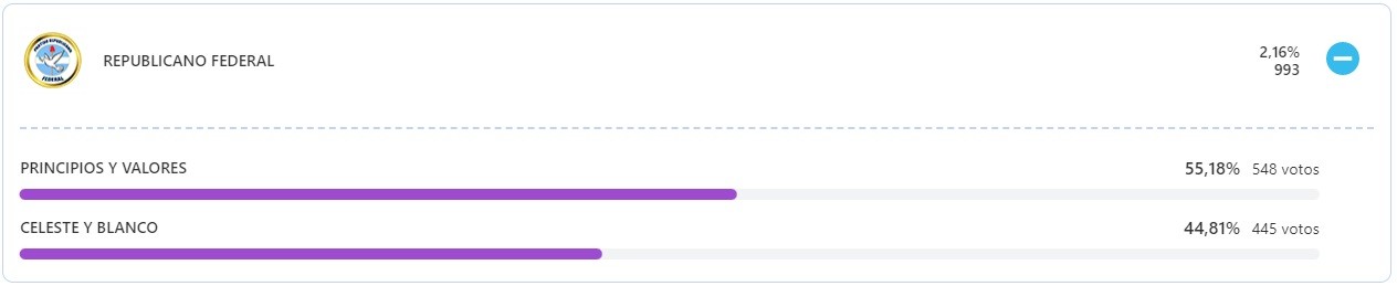 Según los datos arrojados por la Cámara Nacional Electoral, con el 93.75% de las mesas escrutadas (240 de 256), estos fueron los resultados de las internas de las distintas fuerzas políticas: