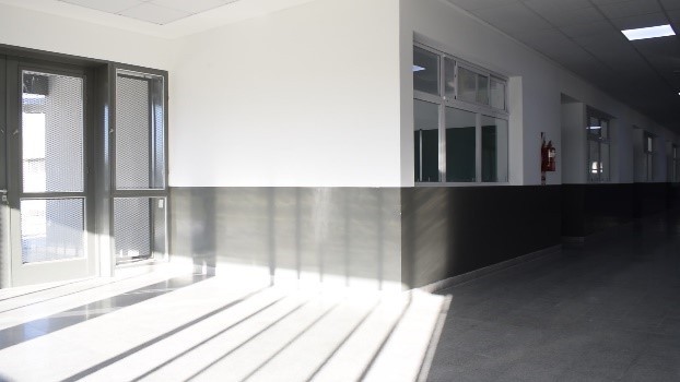 La infraestructura de la nueva E.E.S N°13 está conformada por nueve aulas, cocina, laboratorio, SUM y sanitarios adaptados para personas con discapacidad.