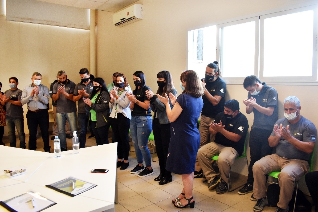 Durante la firma del protocolo, junto a las autoridades de la empresa, y trabajadoras de los diversos sectores de la planta, estuvieron presentes el Secretario General de Atilra, Heber Rios, integrantes de la Comisión Interna, y de la Comisión Directiva de la Seccional General Rodríguez.