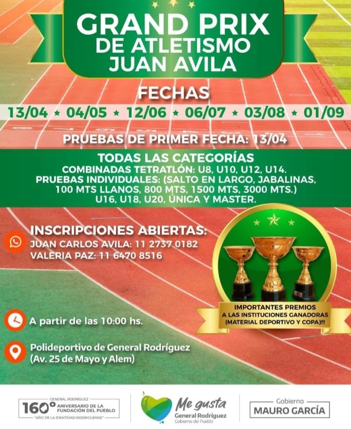 El 13 de abril dará inicio la primera fecha del “Grand Prix de Atletismo Juan Ávila” que se llevara a cabo en el Polideportivo Municipal y donde distintas instituciones deportivas de la región podrán competir en diversas categorías de disciplinas de atletismo.