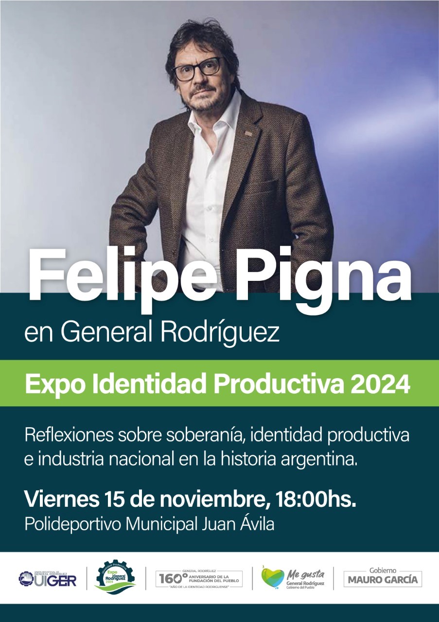 Reafirmando el camino emprendido por el gobierno local, encabezado por el señor Intendente Mauro García, se realizará en General Rodríguez un evento de gran relevancia para el desarrollo económico de nuestro municipio: la Expo General Rodríguez | Identidad Productiva. Contará entre sus invitados, con la presencia de Felipe Pigna y Darío Sztajnszrajber.