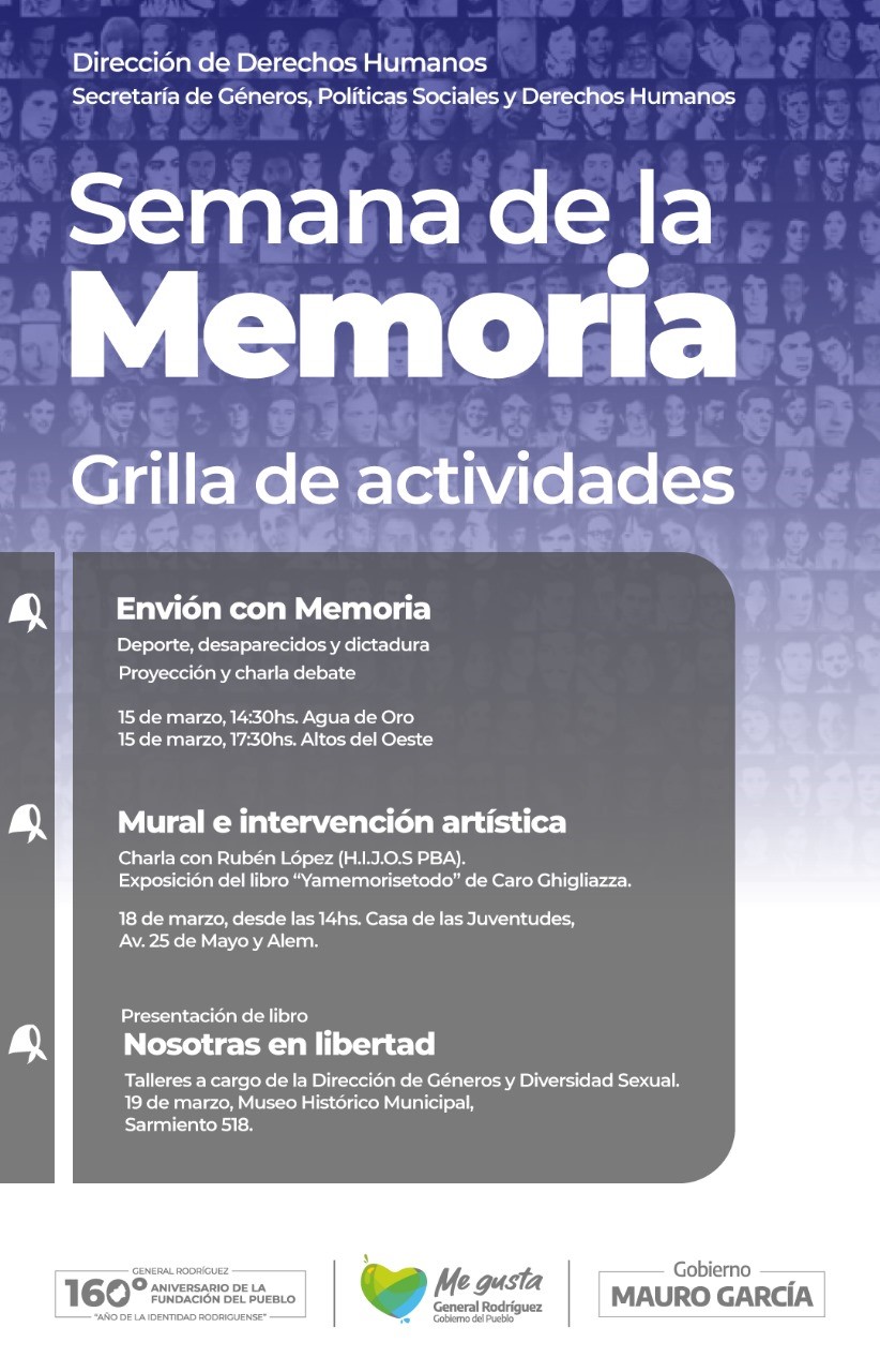 Las actividades comenzaron el pasado 15 de marzo, cuando se realizó el “Envión con Memoria”, donde distintos jóvenes participantes del programa llevaron adelante una proyección y charla debate sobre “Deportes, desaparecidos y Dictadura” en los barrios Altos del Oeste y agua de oro.
