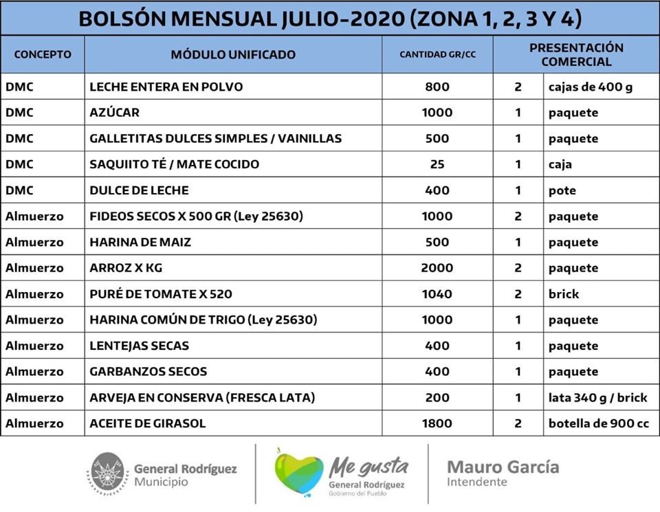 Producto de la suspensión de clases que se dictaminó en todo el país por la pandemia de Coronavirus, desde el gobierno de la provincia, en coordinación con la Secretaria de Salud Pública y Desarrollo Social, la Dirección de Políticas Alimentarias, y la Jefatura del SAE de General Rodríguez, se trabajó durante los últimos meses para sostener un esquema que permitiera garantizar la alimentación de estudiantes que asistían a los comedores escolares de las escuelas de nuestro distrito.