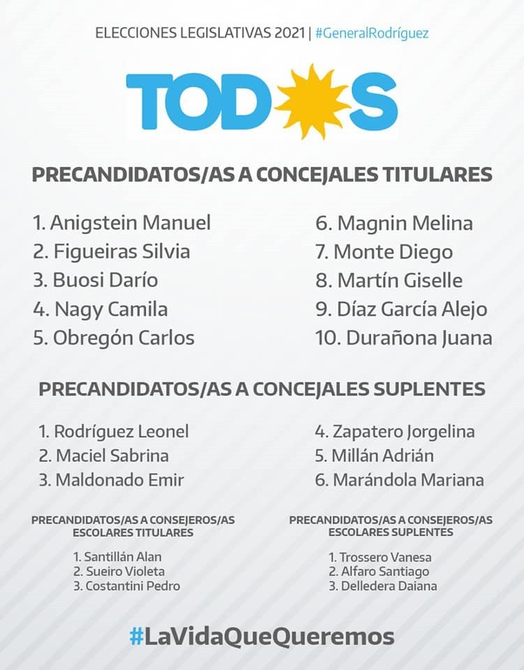 Se manifestó muy conforme con quienes integra la nómina oficial, de la cual destacó principalmente la fuerte presencia de la militancia, e indicó que, para la gestión, los próximos dos años, “la prioridad es completar todos esos proyectos que nos planteamos desde un primer momento”, “para que todos los sectores, especialmente los más golpeados, puedan salir adelante”.