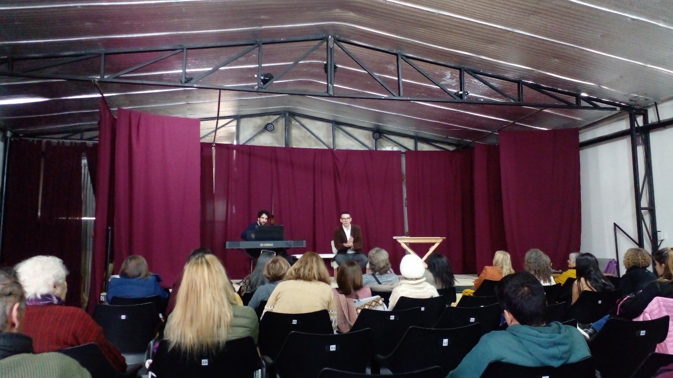 En relación a cómo se sintieron presentando este taller en nuestra ciudad, Manzanelli dice: «siempre venir a un lugar así, que es medio ajeno o lejano a uno, y descubrir gente ávida por aprender, muy conectada con la narración y con aprender sobre la música y la palabra, personalmente me pareció genial».