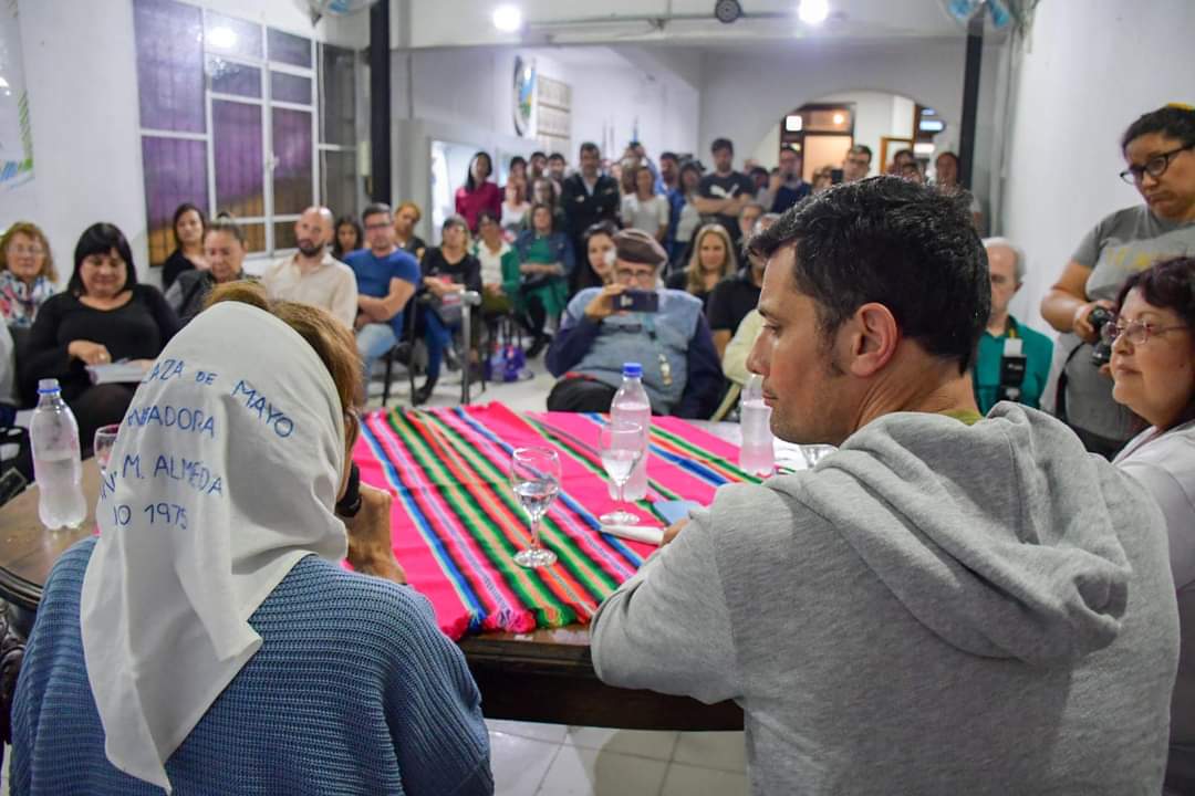 Al iniciarse el encuentro, la mesa le dedicó unas palabras de agradecimiento a Taty por su visita y también resaltaron la importancia de la misma en un contexto en el que estamos siendo atravesados por los discursos de odio. “Estas compañeras que han luchado tanto, que han sostenido su causa siempre, en todo momento, nos han enseñado que las causas justas no se renuncian nunca. Este es el momento en el que todos y todas debemos asumir el compromiso de combatir sin armas, pero con la palabra fuerte y sostenida”, sostuvo el intendente Mauro García, quien además afirmó que este tipo de actividades que se llevan adelante junto con la Dirección de Derechos Humanos “nos ayudará a no repetir nunca más la historia”, agregó.