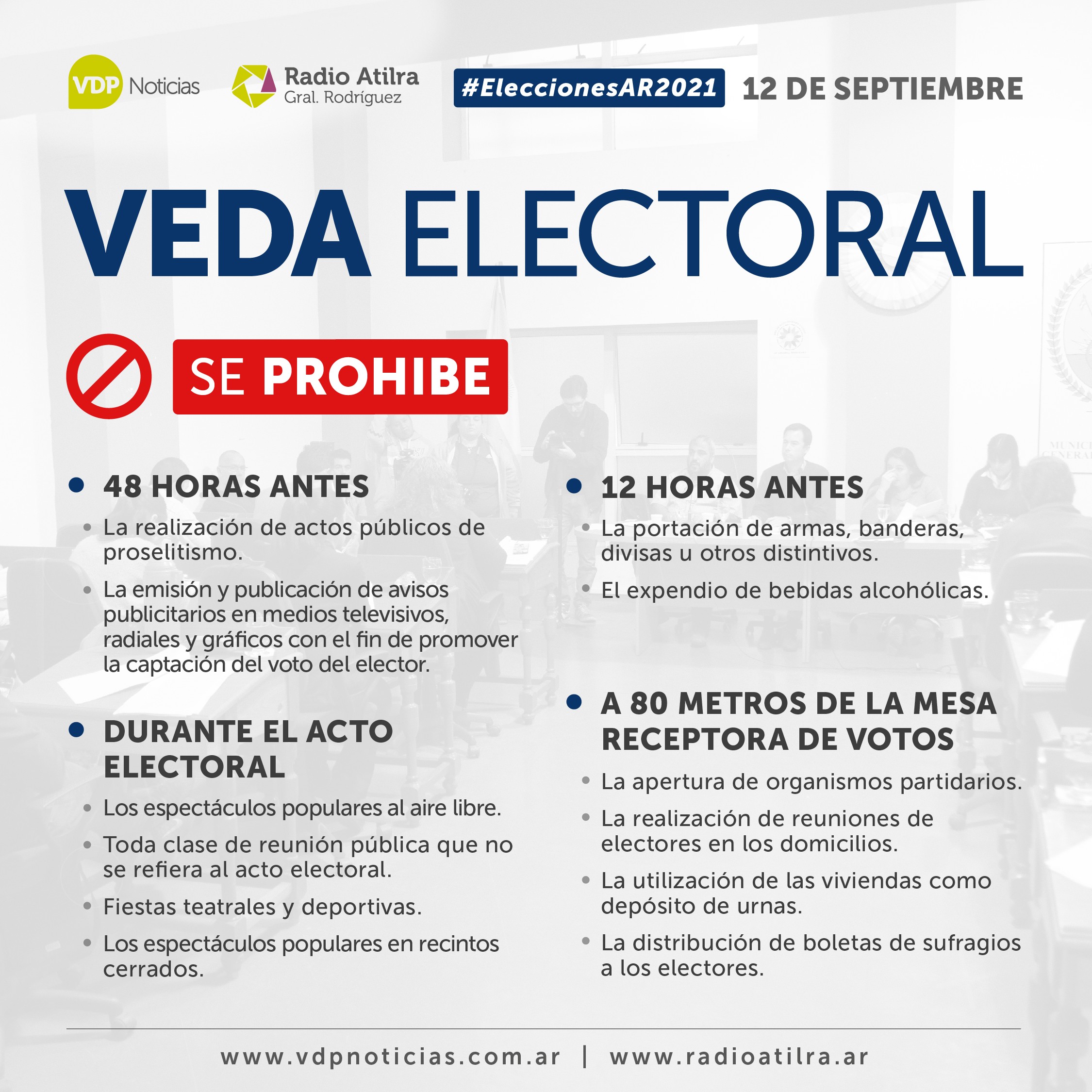 La veda electoral comenzó hoy, 10 de septiembre, a las 8 de la mañana. Quienes no la respeten podrán ser denunciados por violación al Código Electoral y sancionados si la Justicia comprueba la falta.